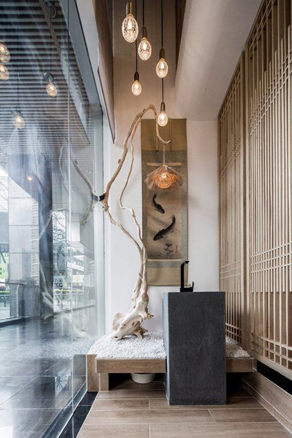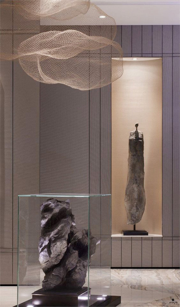中國是一個講究意境的國家,無論是傳統(tǒng)的山水畫還是園林造園藝術,都講究注重空間的營造。中式風格酒店在大堂設計中往往運用中國古典園林常用的多種造景手法加以渲染,如借景,框景,對景等,園林手法在室內(nèi)空間的運用使室內(nèi)空間顯的更具有層次感,更加含蓄自然。