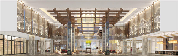 精品酒店大堂裝修設(shè)計中,大氣與美觀是最基本的要點;大氣主要通過空間性與視覺感實現(xiàn),空間不可太小,在充分利用原有建筑結(jié)構(gòu)的基礎(chǔ)上可進(jìn)行適度擴(kuò)張,對于無法擴(kuò)張的空間,可采用鏡面材質(zhì)造型或飾面的處理手法;空間的高度不可太低,從空間感的設(shè)計角度來講,越高的空間越有氣勢。另一方面,美觀的效果主要通過造型、材質(zhì)選擇及燈光三個方面進(jìn)行設(shè)計。