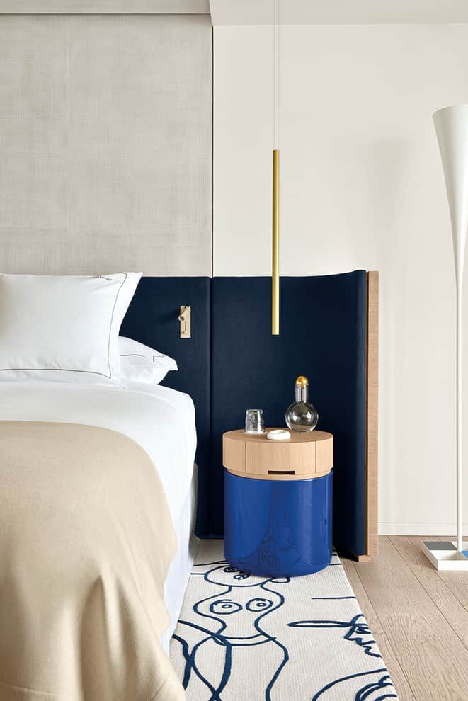 第三,聚光燈的照射對象和那些自發(fā)光的界面元素易形成環(huán)境中的視覺高潮,改變并主導了設計元素之間的秩序關系,遂也對設計個性產生影響。 主題酒店立面后的背光設計強調了家具和立面的對比效果,自下而上的光的語言使得習慣了自上而下強弱褪暈變化的視覺心理產生了新穎的個性色彩。照明引導人的視線移動,照明又宛如設計師手中的一支畫筆,通過改變界面的明暗變化和主次關系,將個性賦予了室內環(huán)境。