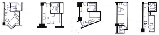 套房的數(shù)量和所占比例因酒店的規(guī)模和類型而定。大多數(shù)酒店有2%~5%的套房配置,高級酒店和會議酒店的套房數(shù)量則可以達(dá)到10%。套房大多位于景色優(yōu)美的頂層位置,有些也會被放置在建筑結(jié)構(gòu)提供的異型房或者用來填補(bǔ)在特殊邊層的某個建筑空間。