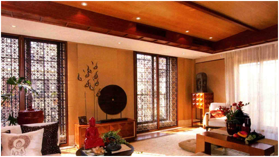 公共空間的家其具陳設(shè)在選材上經(jīng)常選用東南亞盛產(chǎn)的竹、木、藤等自然綠色環(huán)保的材料為主,通常家具以兩種以上的材料進(jìn)行混合搭配制作而成,例如藤條與木材,竹子與藤條,利用材料的寬、窄、深、淺和材料本身的機(jī)理差別進(jìn)行設(shè)計(jì),各種不同編織手法使每件家具都呈現(xiàn)出獨(dú)特的色彩和紋理。東南亞的家具摒棄了復(fù)雜的裝飾和線條,取而代之的是簡(jiǎn)潔柔和的設(shè)計(jì)手法,一般來(lái)說(shuō)東南亞家具的結(jié)構(gòu)高度比較低矮,這有利于人們隨意地坐臥,在不經(jīng)意之中自然舒展人們的肢體,放松緊張的心情。東南亞家具以深色系為主,色彩方面融合了中式風(fēng)格的設(shè)計(jì),采用深棕色,黑色等深色調(diào),今人感覺(jué)沉穩(wěn)大氣。由于追求舒適和休閑的生活方式,東南亞的室內(nèi)裝飾拋棄了一些中式文化世俗的程式化的觀念,使室內(nèi)環(huán)境裝飾呈現(xiàn)清新自然的特色。