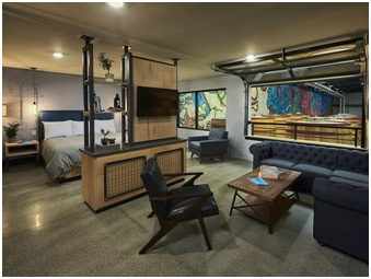 酒店一共32間房,其中豪華套間有8個:所有客房都基于Brewdog的產(chǎn)品主題打造,可以看到各種機遇釀酒狗商標主題以及精釀產(chǎn)品的裝修搭配,而8間豪華套則更是由知名藝術家定制打造,將通過房間內(nèi)的陳設、墻壁上的藝術作品等向客人詳細介紹酒廠歷史、釀酒理念以及十多年來的不同產(chǎn)品。